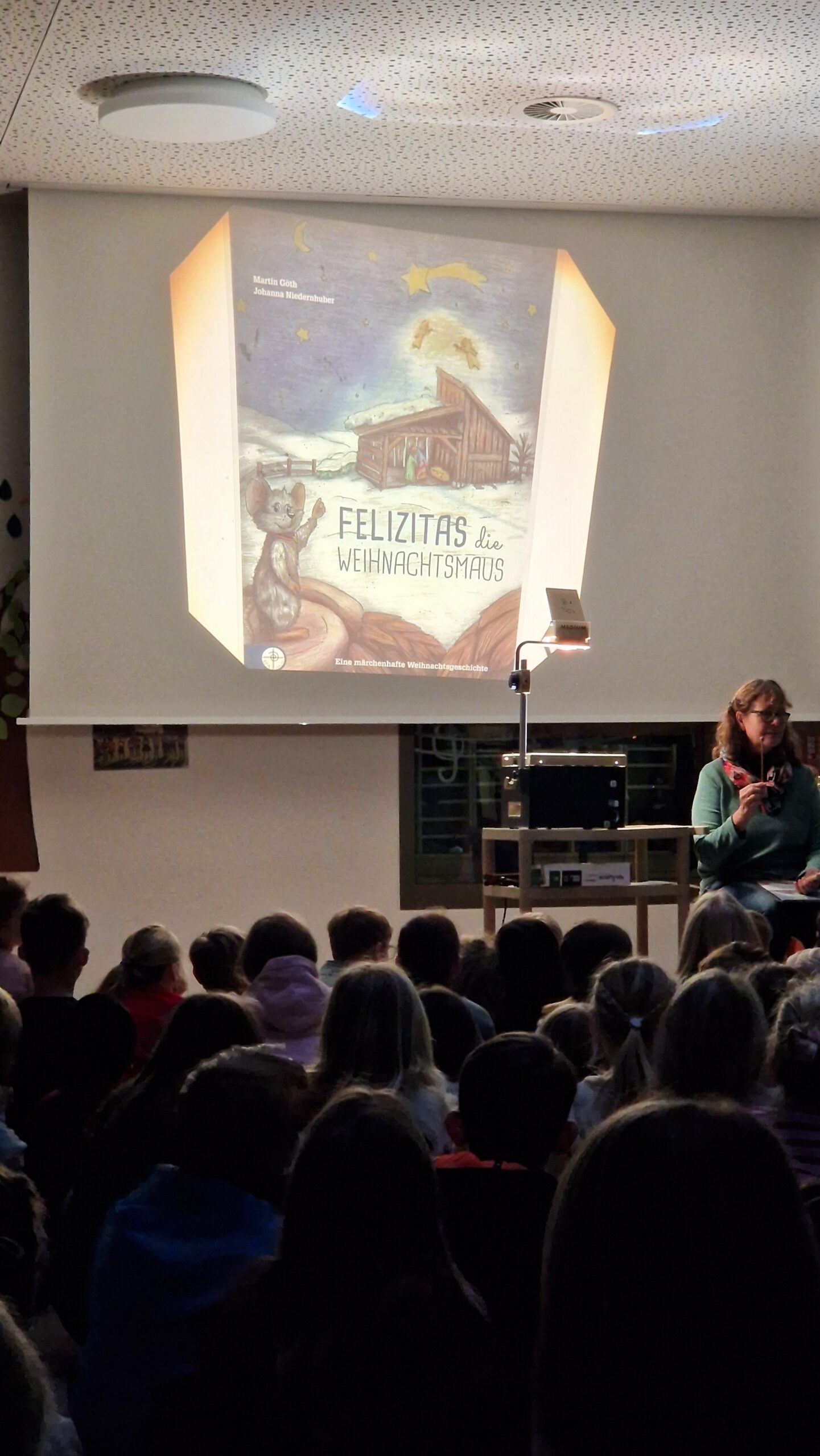 Gemeinsam sangen wir bekannte Weihnachtslieder, beteten zusammen und hörten gespannt die Geschichte von Felizitas, der Weihnachtsmaus. Sie erzählt von der kleinen Maus, die die Ankunft von Josef und Maria im Stall beobachtet. Voller Freude und Mitgefühl trommelt sie alle Tiere des Waldes zusammen, damit sie den Stall gemütlich machen und die Geburt des Kindes zu einem Fest der Freude werden lassen.