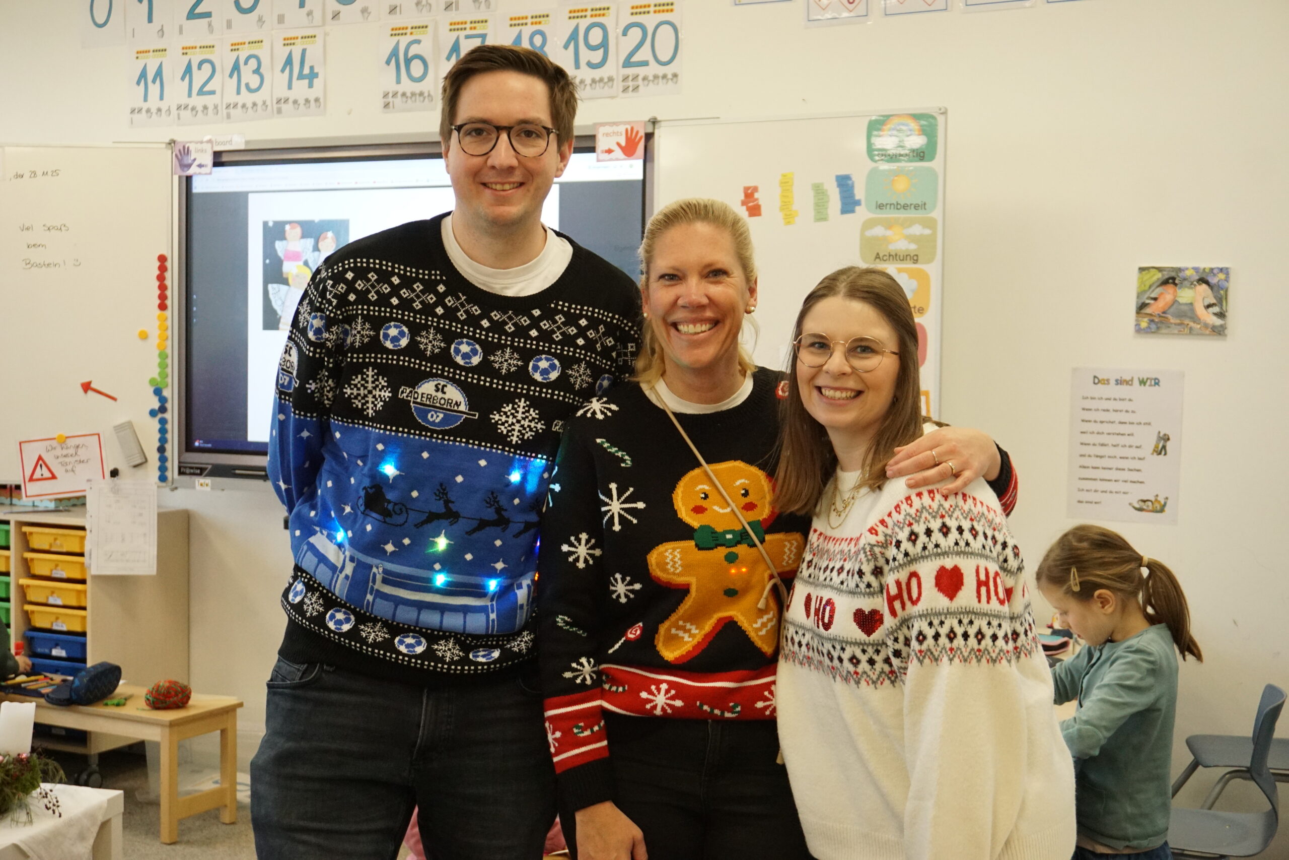 Weihnachtsmusik im Hintergrund und Kekse für zwischendurch sorgten für eine besonders gemütliche Atmosphäre. Viele Kinder kamen in fröhlichen Weihnachtspullis und tauchten gemeinsam mit ihren Mitschülerinnen und Mitschülern in die vorweihnachtliche Stimmung ein. So wurde das Adventsbasteln nicht nur zu einem kreativen Erlebnis, sondern auch zu einem schönen Auftakt in eine Zeit voller Vorfreude, Gemeinschaft und festlicher Wärme.