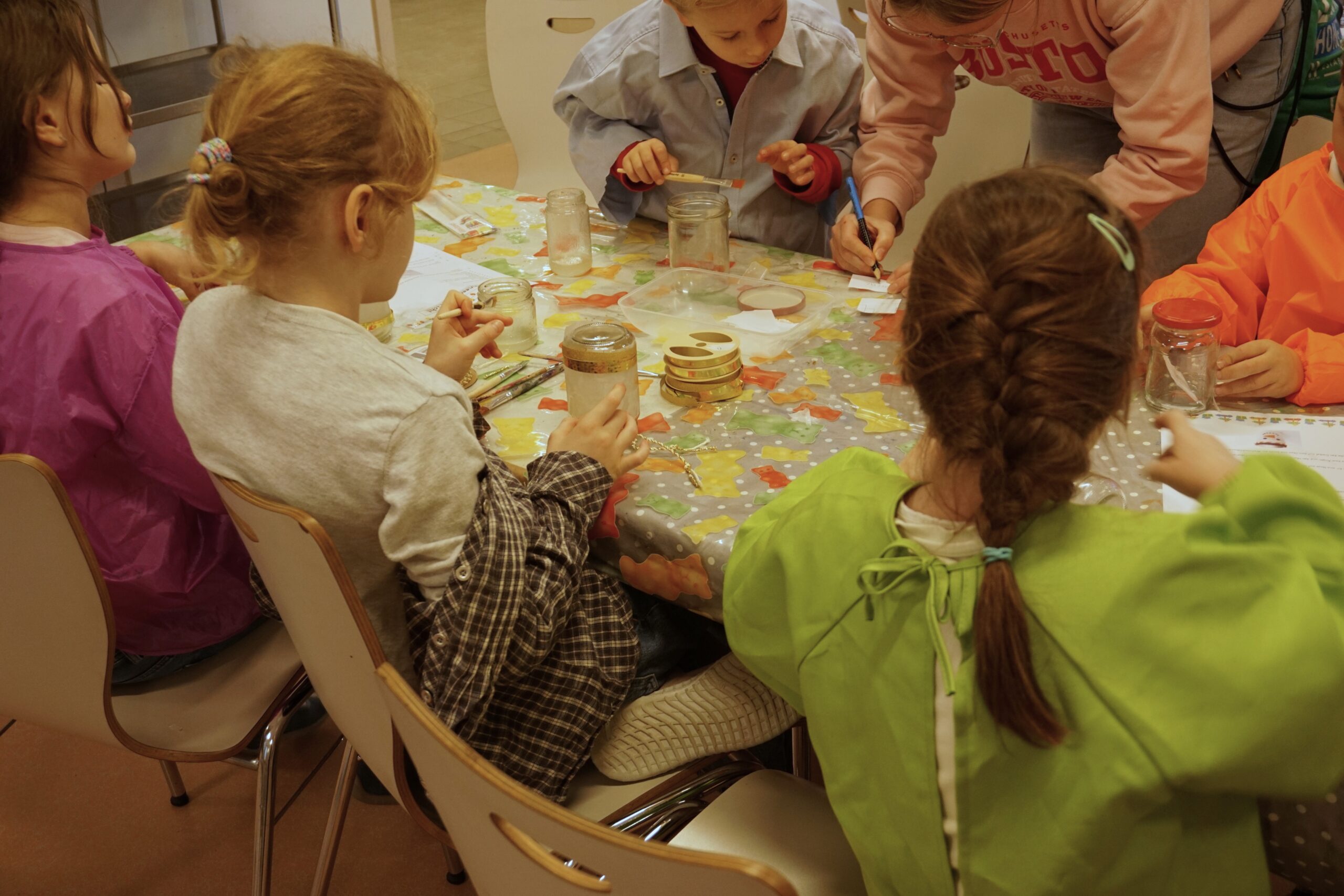 Am vergangenen Freitag verwandelte sich unsere Grundschule in eine stimmungsvolle Adventswerkstatt. In den Klassenräumen und auf der Clusterebene wurde emsig geschnitten, geklebt und gefaltet. Die Kinder zogen mit einem Laufzettel von Station zu Station und ließen sich jeden kreativ gemeisterten Halt mit einem Stempel quittieren – ein kleines Abenteuer quer durch das weihnachtliche Bastelangebot.