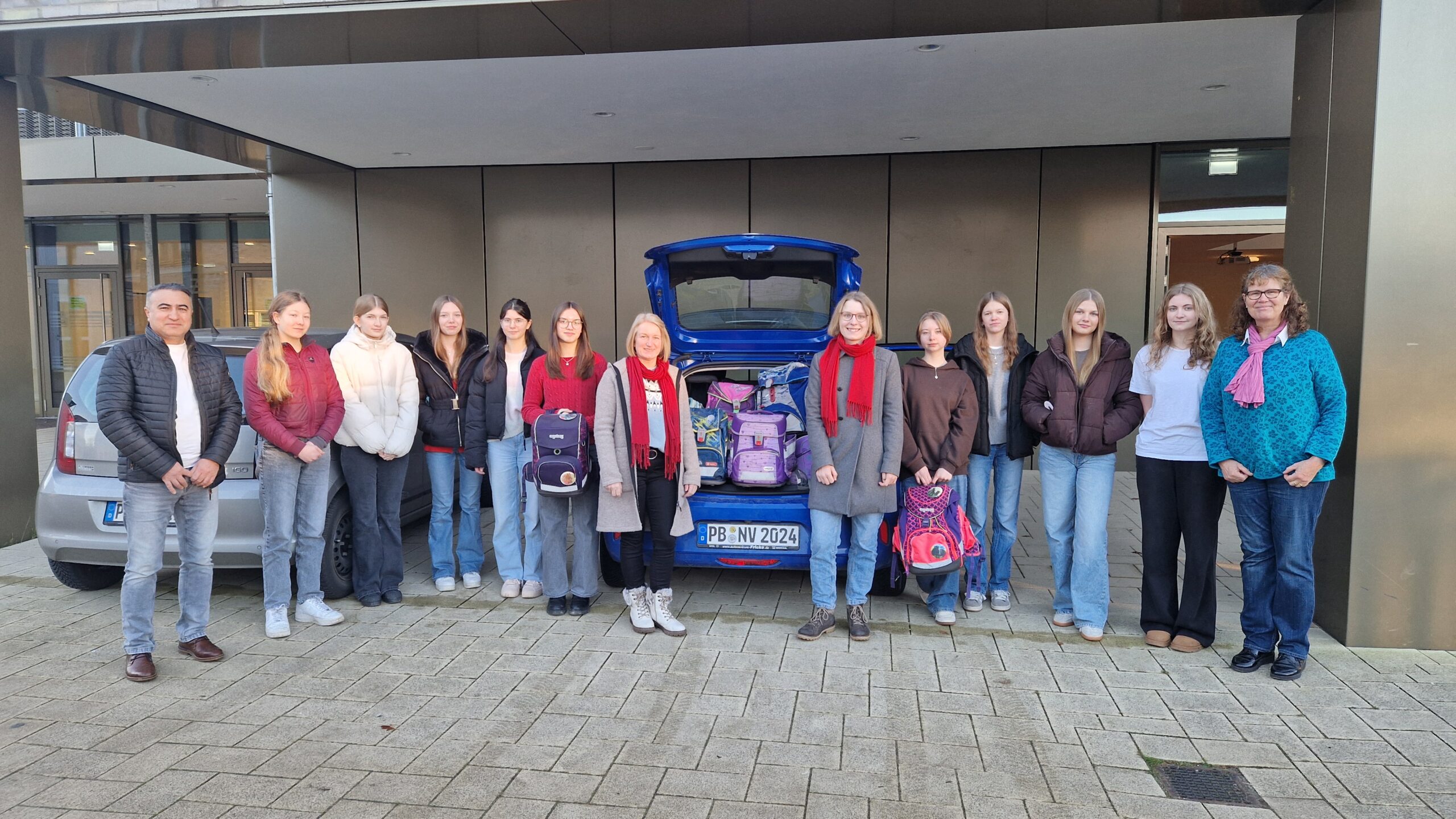 Die Leiterin der Schulmaterialkammer Frau Nicole Vogt konnte auch in diesem Advent gemeinsam mit zwei ihrer Mitarbeitenden wieder zahlreiche Sachspenden entgegennehmen, die von der ganzen Schulgemeinde St. Michael vor Weihnachten passend zum Fest des Hl. Pierre Fourier (9.12.) abgegeben worden waren. Vor allem die vielen gut erhaltenen Tornister finden in diesem wichtigen caritativen Projekt der ev. Diakonie Paderborn-Höxter dankbare Abnehmerinnen und Abnehmer. Die engagierten Schülerinnen der R10a konnten diese schönen Gaben, die das ganze Auto von Frau Vogt bis oben hin füllten, gemeinsam mit Schulseelsorgerin Bettina Schmidt freudig überreichen. Die nächste Aktion ist schon im neuen Jahr für die Fastenzeit geplant. Ganz im Sinne des Hl. Pierre Fourier, der einst sagte: „Mache dein Herz weit für Gott und den Nächsten!“.