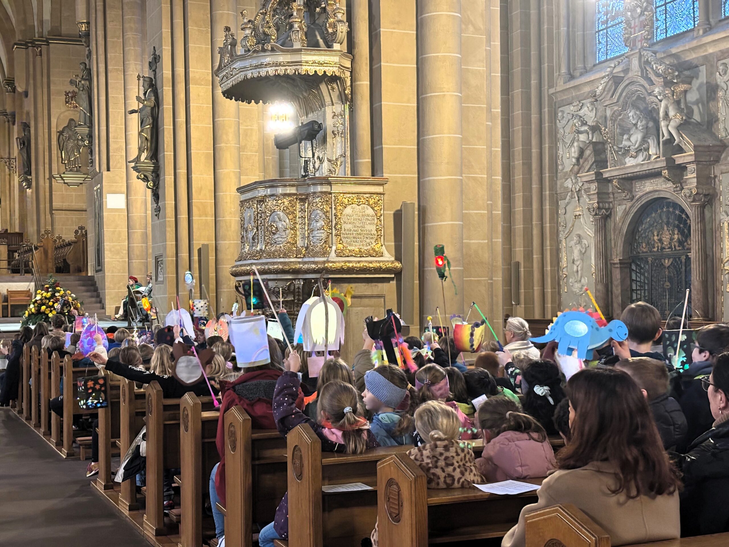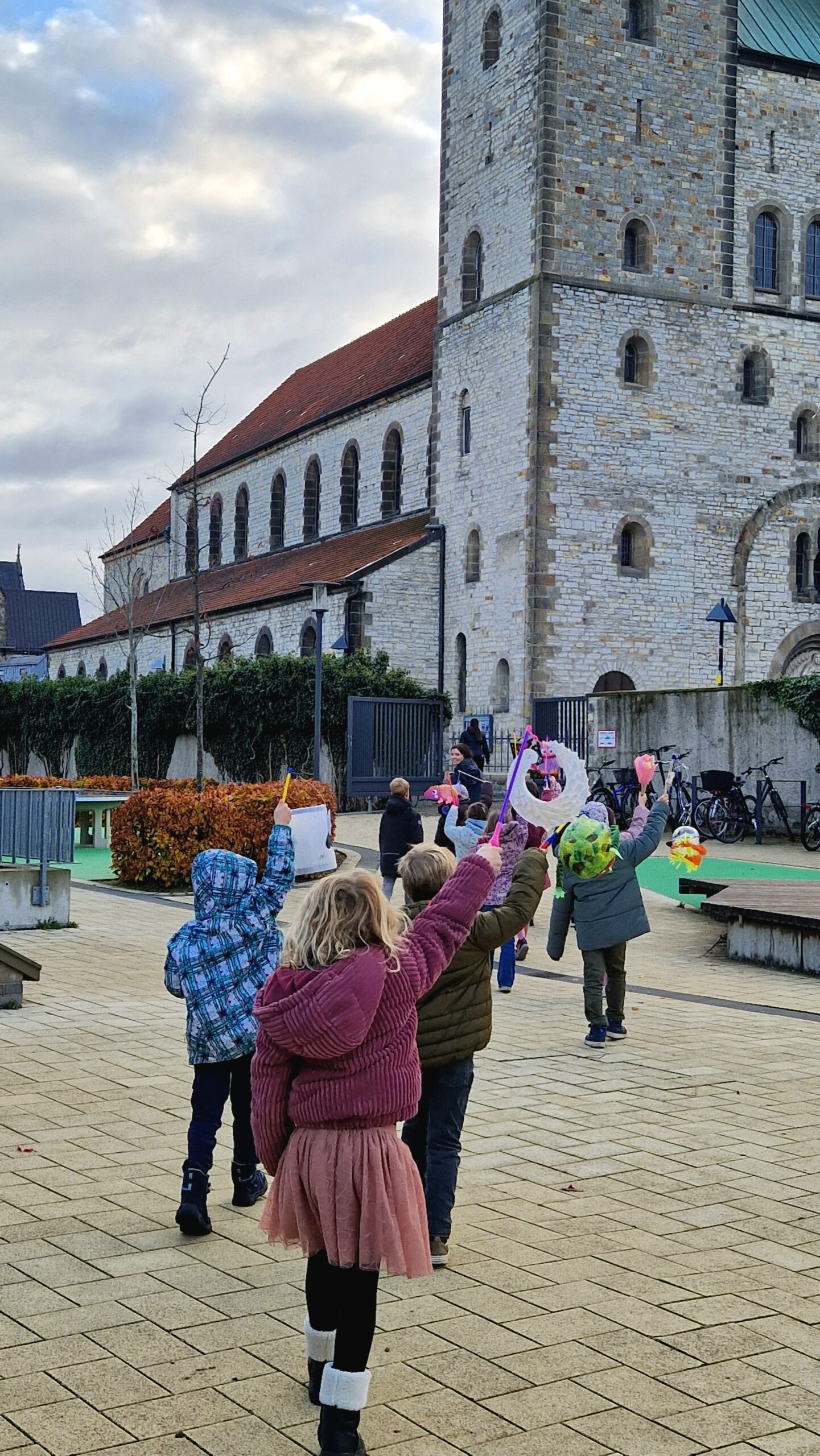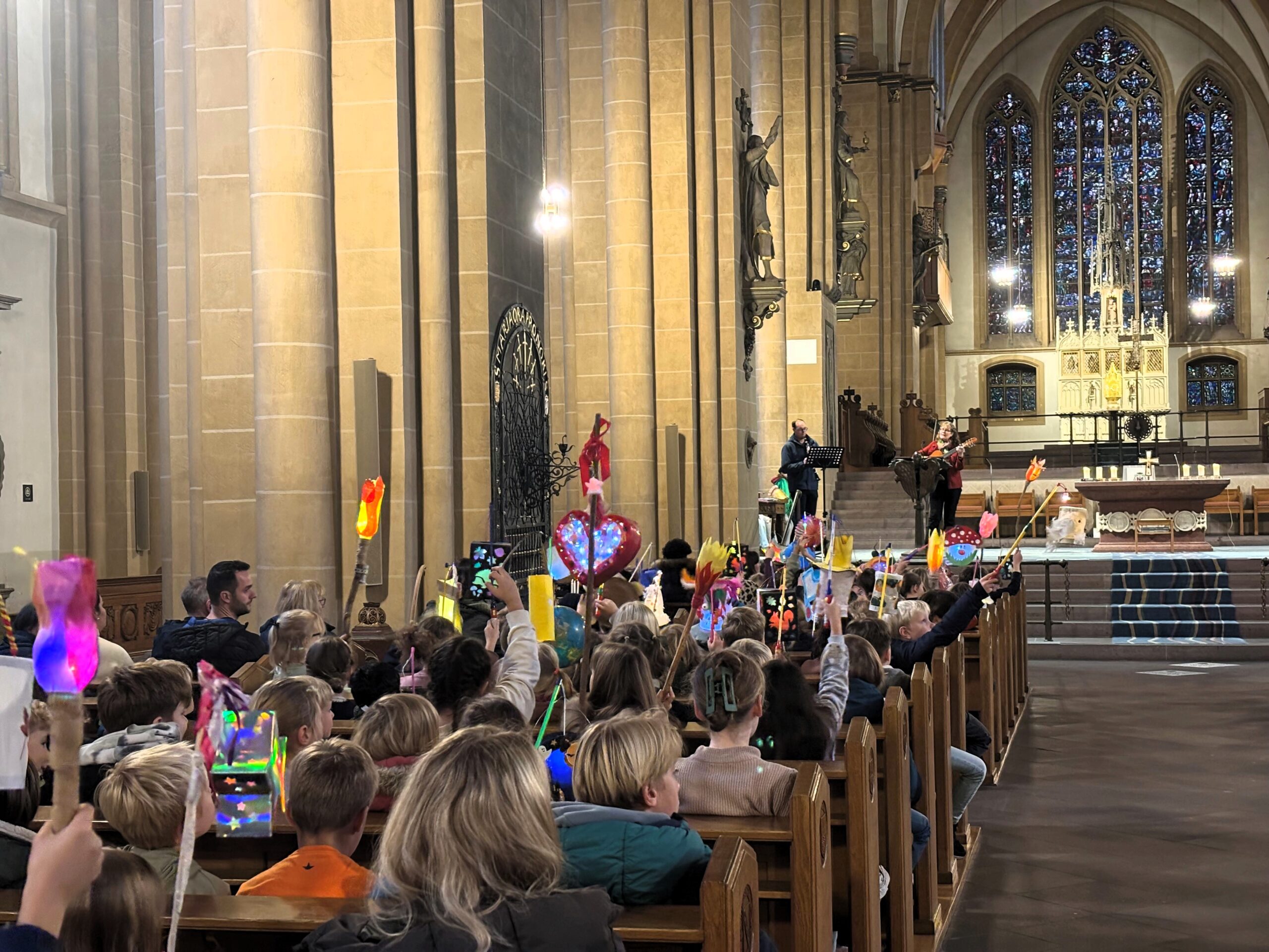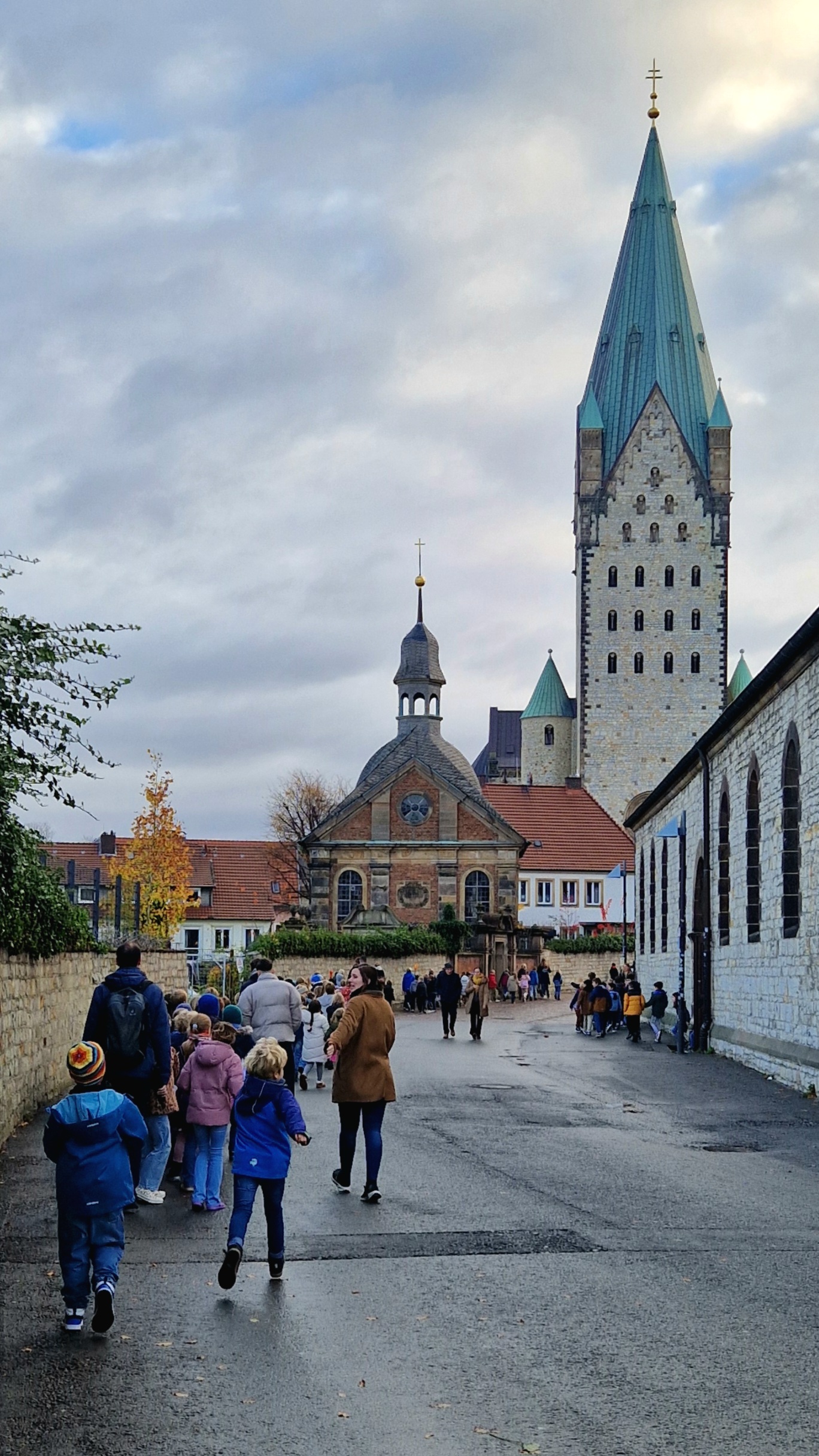 Das Martinsfest der Grundschule St. Michael wurde in diesem Jahr direkt am 11. November, dem Fest des Hl. Martin, mit den acht Klassen der Amseln, Buntspechte, Nachtigallen, Zaunkönige, Rotkehlchen, Spatzen, Gimpel und Buchfinken gemeinsam im Hohen Dom begangen. Dort feierten die Schülerinnen und Schüler mit ihren Lehrerinnen, Lehrern und Schulseelsorgerin Bettina Schmidt einen schönen Gottesdienst und brachten dazu ihre leuchtenden Laternen mit. Eine Gruppe von Kindern aus der Spatz-Klasse hatte das Spiel von der Mantelteilung eingeübt, dass seinerzeit das Leben des Offiziers Martin für immer veränderte, und stellte dies eindrucksvoll dar. Auch alle anderen Kinder beteiligten sich am Gottesdienst durch das kräftige Singen der Martinslieder und das Hochhalten ihrer schön gestalteten Laternen. Mit diesen zogen dann die Klassen am Ende in einem eigenen Umzug durch den Dom, der anschließend über den Abdinghof bis zur Grundschule weiterging. Musikalisch begleitet wurde der Gottesdienst durch Frau Schmidt an der Gitarre und Herrn Koeper an der Klarinette.