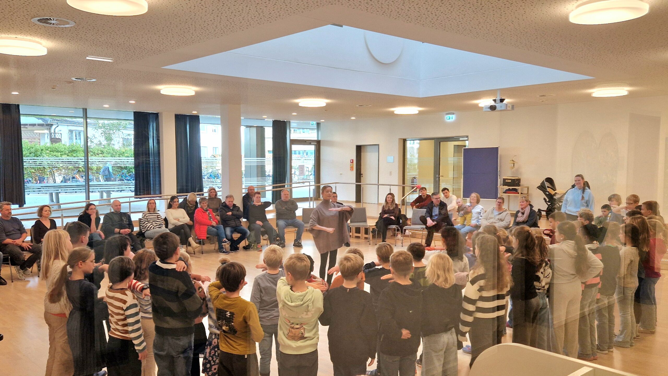 Mit fröhlichen Stimmen und leuchtenden Augen feierten die Kinder unserer Grundschule gemeinsam mit ihren Eltern und Familien sowie der Dommusik das traditionelle Herbstsingen. Auf dem Programm standen bekannte Volkslieder wie „Der Herbst ist da“ und „Bunt sind schon die Wälder“, welche das Atrium in eine warme, herbstliche Stimmung tauchten. Besonderen Applaus gab es auch beim Lied „Hexentanz“: Die Kinder verwandelten sich in tanzende Bäume im Wind des Hexenwaldes – ein stimmungsvolles Bild, das viele Besucher zum Schmunzeln brachte. Zum Abschluss sang das Publikum gemeinsam mit den Kindern den Kanon „Hejo, spann den Wagen an“ und füllte den Raum mit kräftigem Gesang. Draußen wehte bereits der erste Herbstwind, und so ging das Publikum – beschwingt und eingestimmt auf die bunte Jahreszeit – hinaus in den Wind, als trüge er die Melodien des Herbstsingens weiter durch die Straßen.